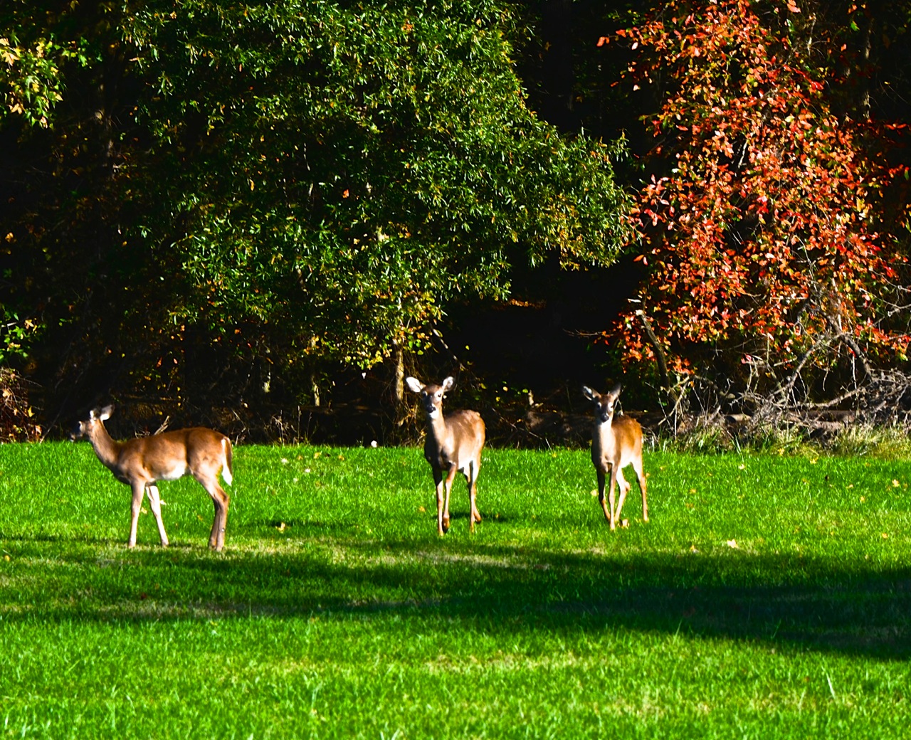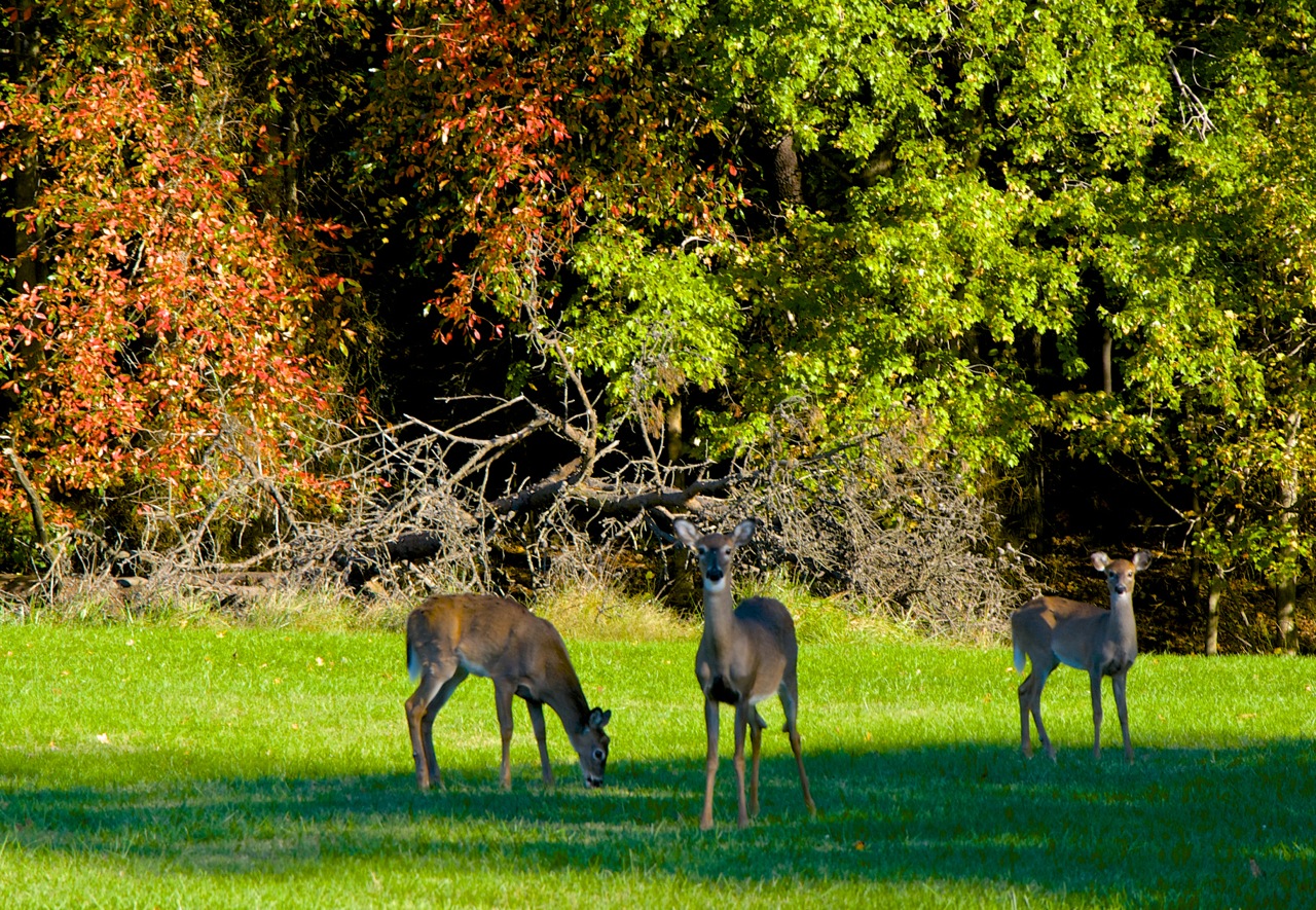 Deer feeding in a field in Green Belt Park, Maryland: Glynn Wilson