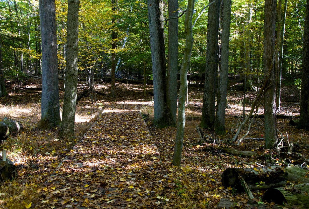 Autumn leaves cover a wooden bridge on one of the hiking trails surrounding Greenbelt Park, a National Park Service campground and day use area in Maryland very near Washington, D.C. Glynn Wilson