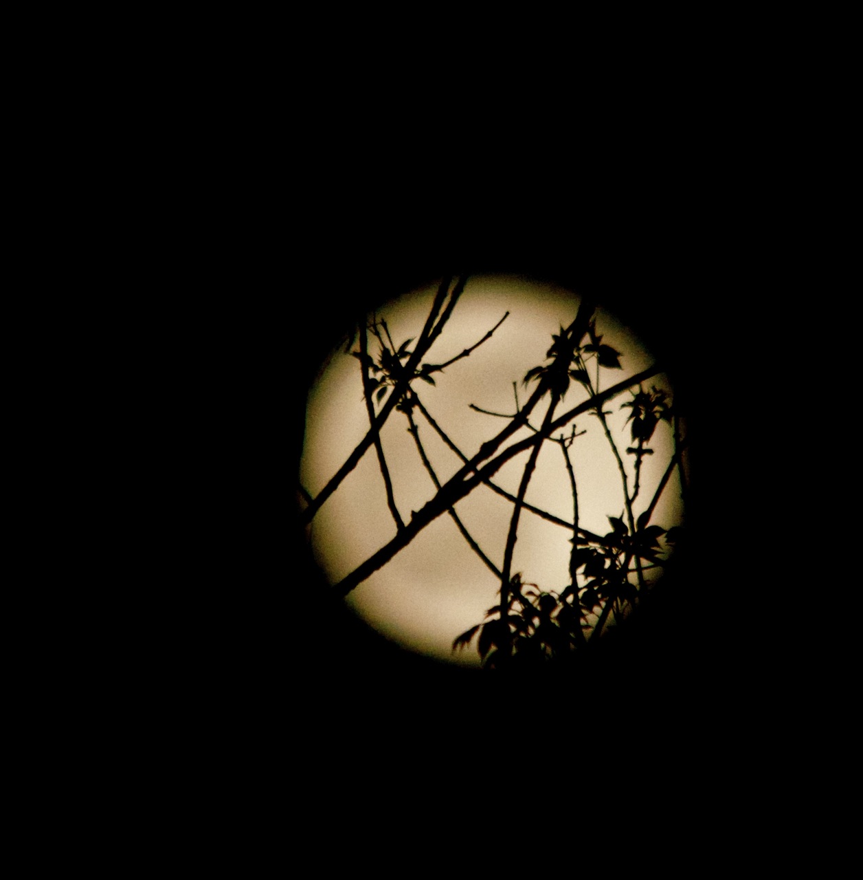 By the time we made it back to the campsite and I got the big lens on the tripod and the Nikon hooked up, some of the sun’s reflective glow had faded, but I decided to snap some photos anyway. When you shoot through the trees, the limbs and leaves almost make it look like a jack-o-lantern.