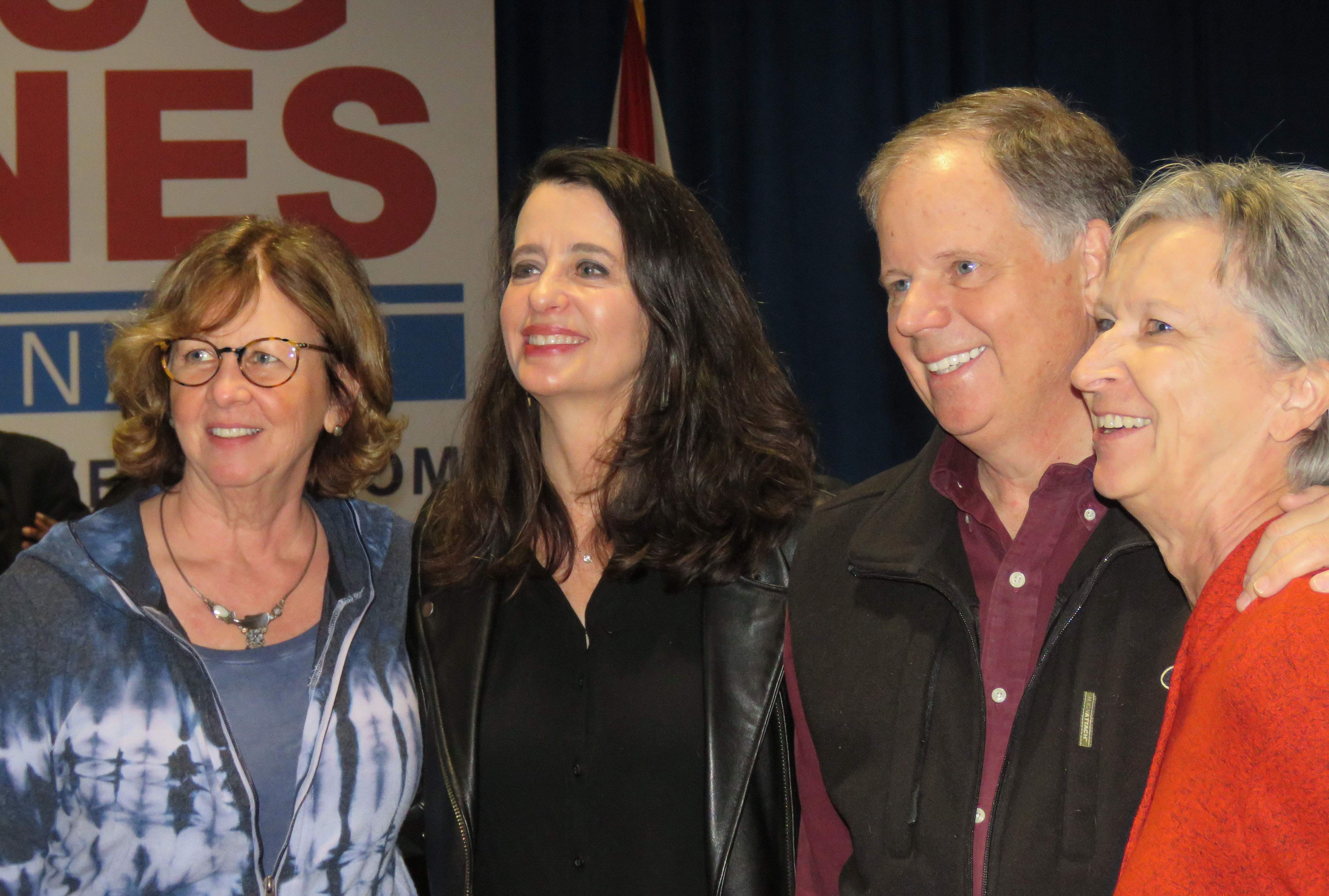 Senator Doug Jones and his wife Louise pose for pictures with supporters in Birmingham at a victory party on Sunday, Feb. 25, 2018: Glynn Wilson
