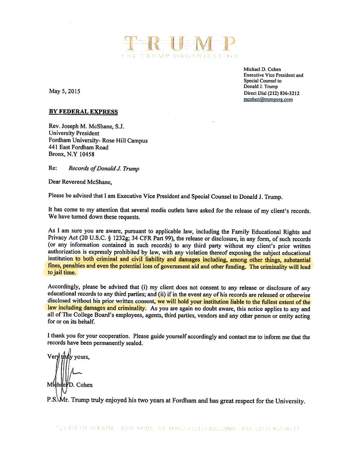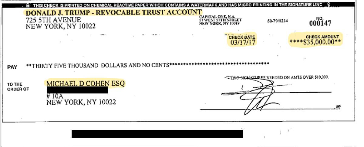 âI am not protecting Mr. Trump anymore,â he insisted, turning over checks and bank records that appear to prove the hush money payments, election fraud, and tax and bank fraud, as he helped Trump inflate the value of properties on loan applications and deflate the value on tax forms (see documents below).