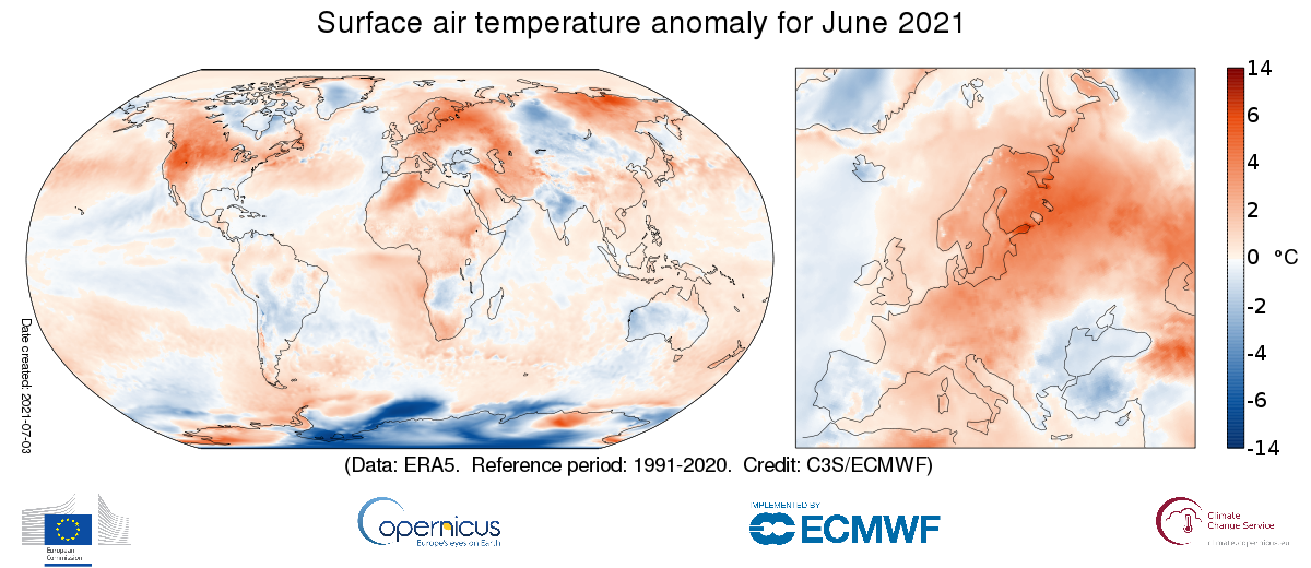 Arctic Siberia also experienced high temperatures and its fourth warmest June ever, on a par with June 2012 when Antarctic temperatures were predominantly colder than usual, the report says.