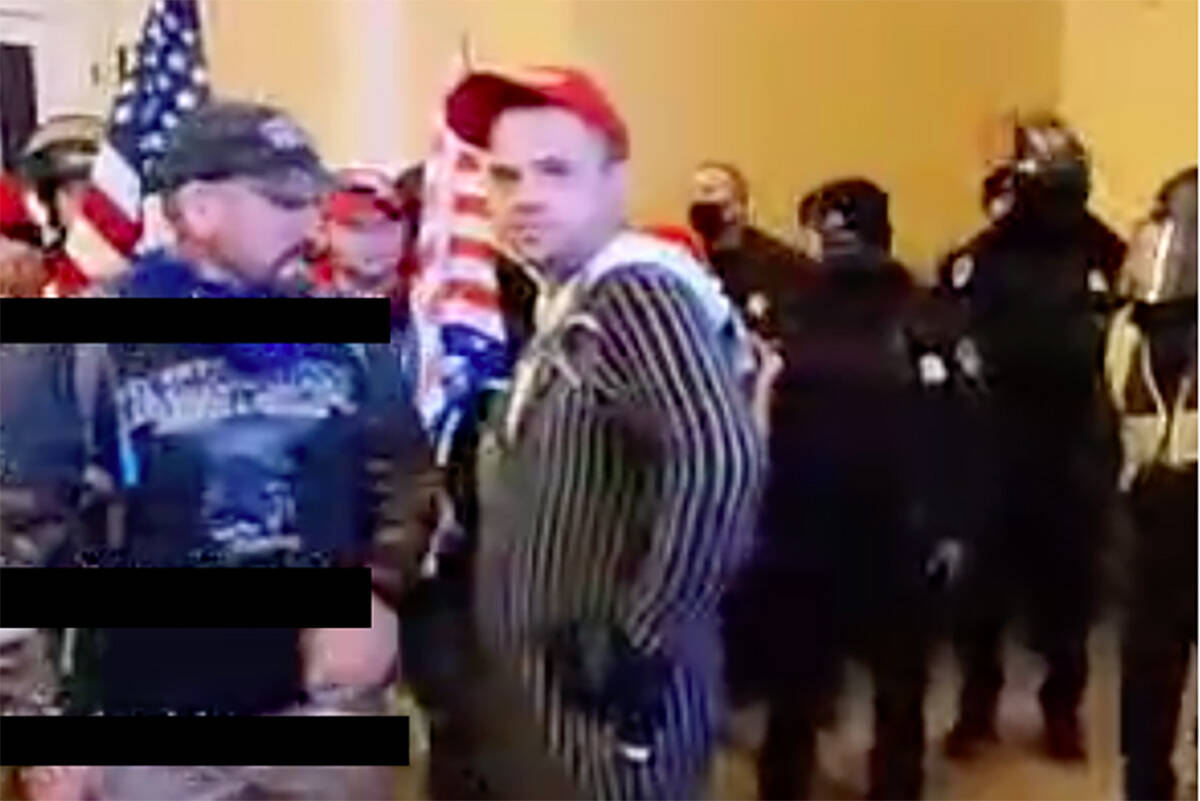 The FBI said it identified Loerhke partly through a video taken Jan. 6 outside of a downtown hotel of a person wearing matching clothing and a similar right-hand tattoo with the word “stay” on the knuckles and the outline of a rose. Haffner was traced through airline, hotel and payment records, his South Dakota driver’s license, as well as the photograph, which showed Haffner standing next to two women whose heads were covered by a black rectangular redaction box, the FBI says.