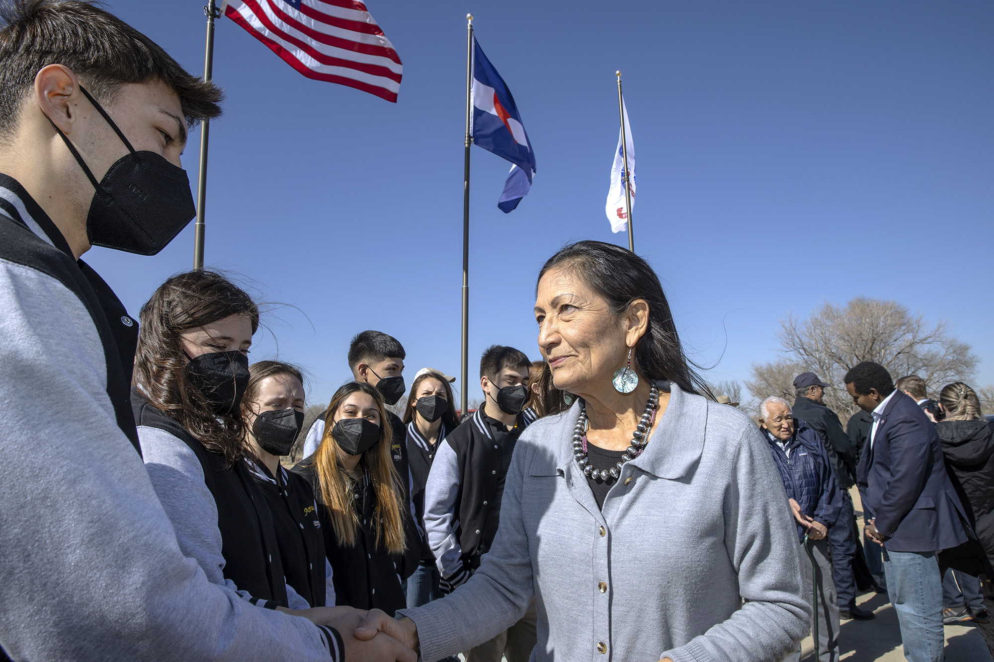 Secretary Haaland visited the Amache site in February with Senator Michael Bennet and Representative Joe Neguse to honor the 80th Day of Remembrance, marking when President Franklin D. Roosevelt signed Executive Order 9066, which gave the U.S. Army the authority to remove civilians from the military zones during WWII. While there, Secretary Haaland met with survivors about their experience as incarcerees and learned how that time has shaped them and their families.