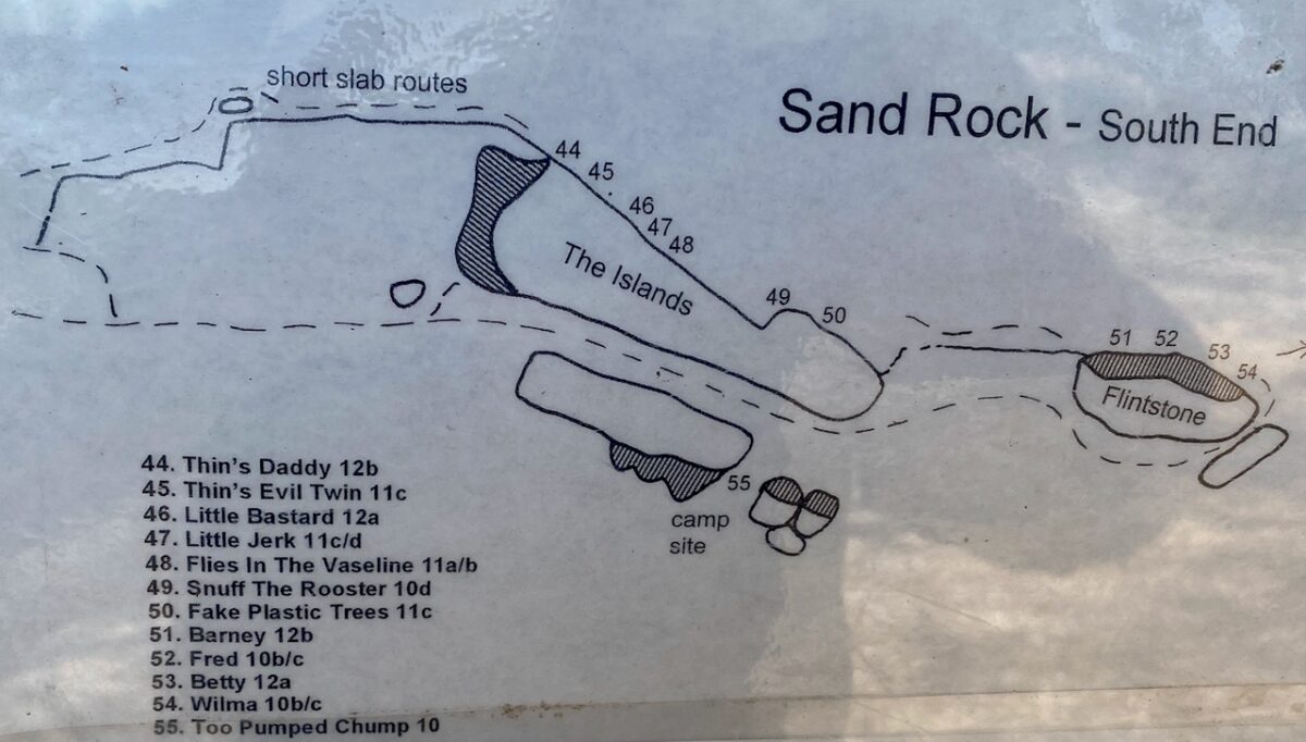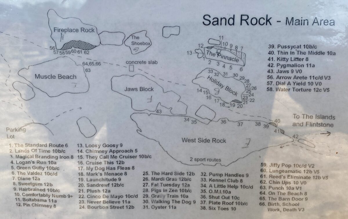 “For many years, it seemed that lowlifes were in direct competition with climbers. Sand Rock was a destination for ATV riders, drunken late-night partiers and other examples of southern stereotypes. Broken beer bottles and overturned port-a-potties were common sights, and the cliffs were despoiled with spray-painted graffiti.”