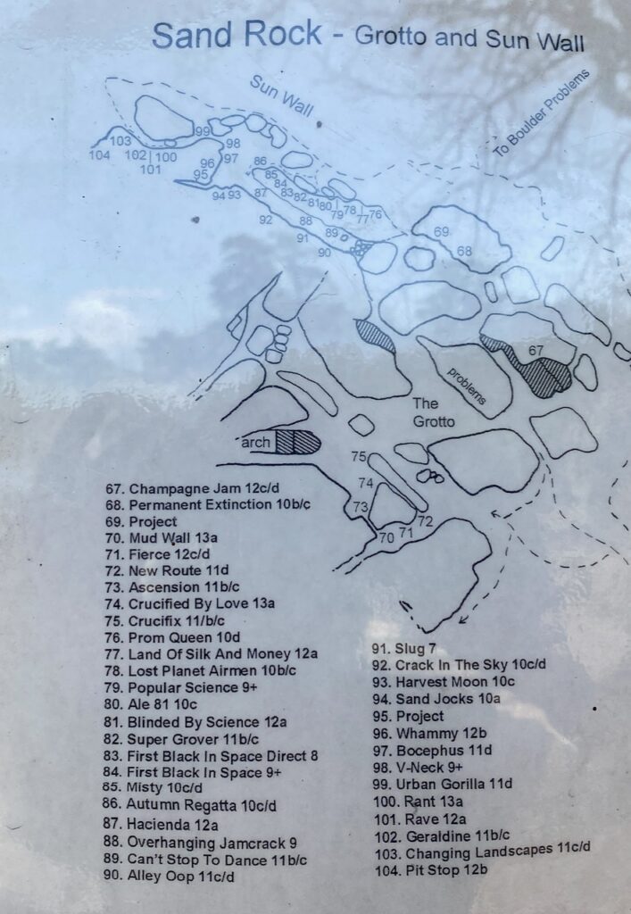 The site has everything from gentle rising broad boulders that may be enjoyed by a novice to vertical rocks for the experienced sport climber. There are over 200 top rope routes, trad climbing and bouldering.