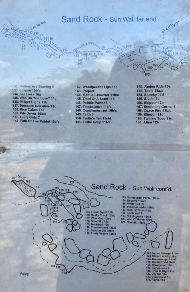 According to some online reviews, the facilities were minimal for much of the park’s history, with the exception of a few hiking trails and a large number of primitive campsites as well as a limited number of portable toilets and trash dumpsters. A long-time Alabama climbing institution, “Sand Rock has had a colorful and sometimes dubious history,” according to one online review.