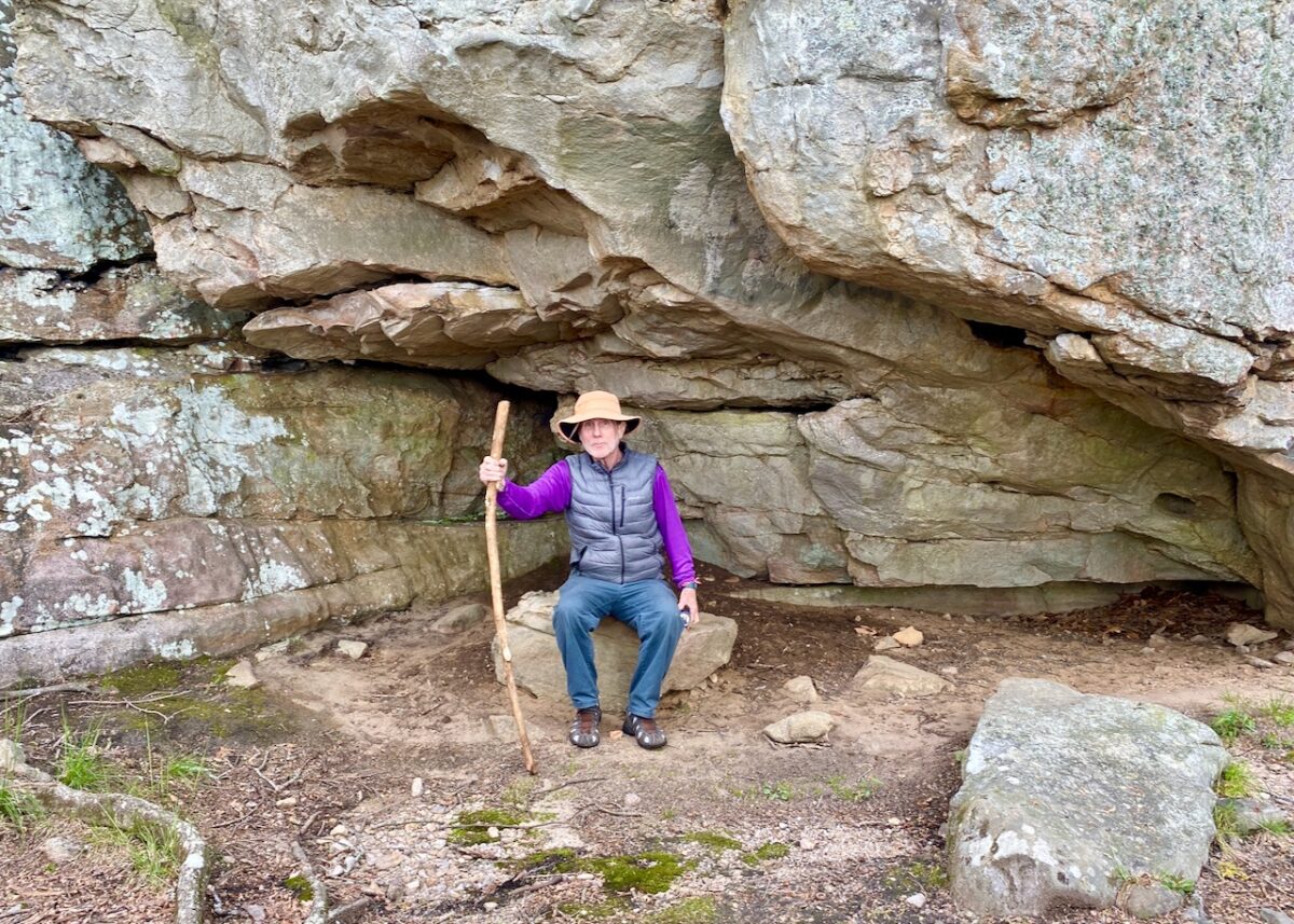 Tab Gilbert taking a hiking break in one of the many shallow caves where you can imagine Native Americans living before the 1830s when they were removed from their land by the U.S. government: Glynn Wilson
