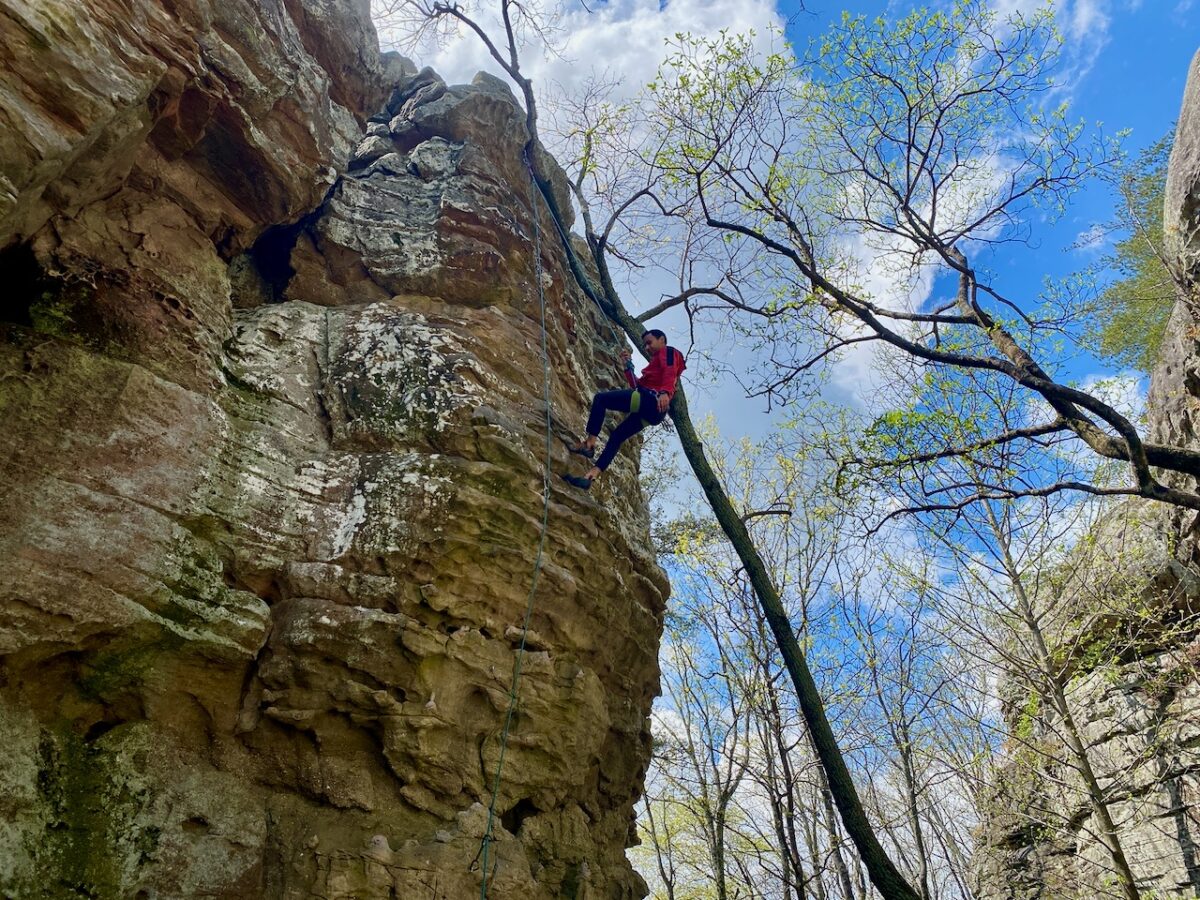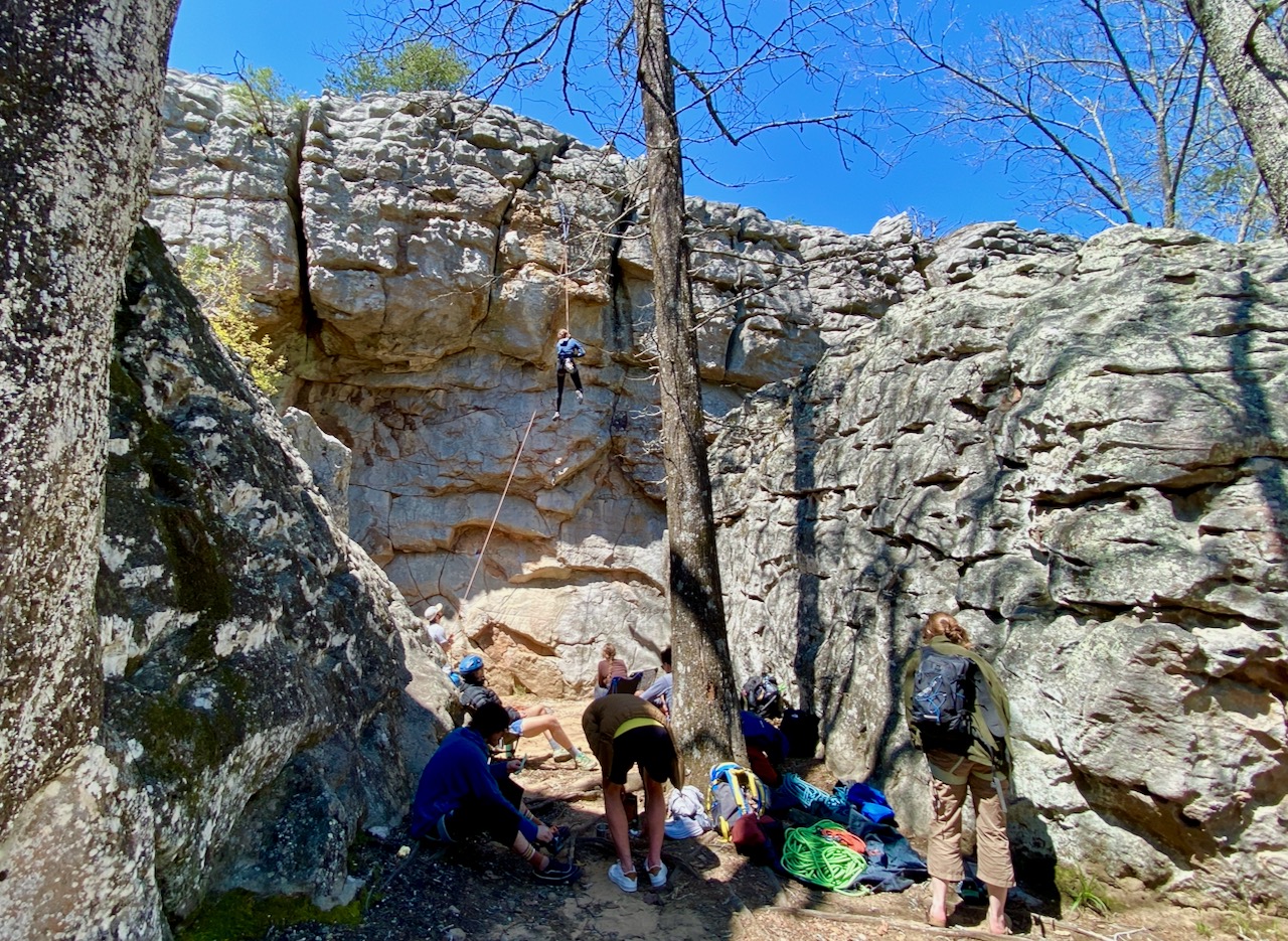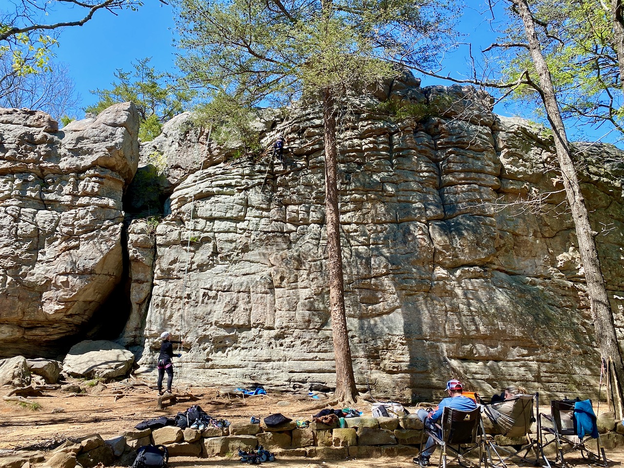 There’s not much in the way of historical information available at the park, but according to the Encyclopedia of Alabama, it is made up of narrow slot canyons that meander among the high cliffs where there are natural arches, shallow caves and large freestanding sandstones that rise above a maze of passages and overhangs, perfect for rock climbing enthusiasts, who packed the place this weekend from Georgia, South Carolina, Tennessee and even Louisiana.