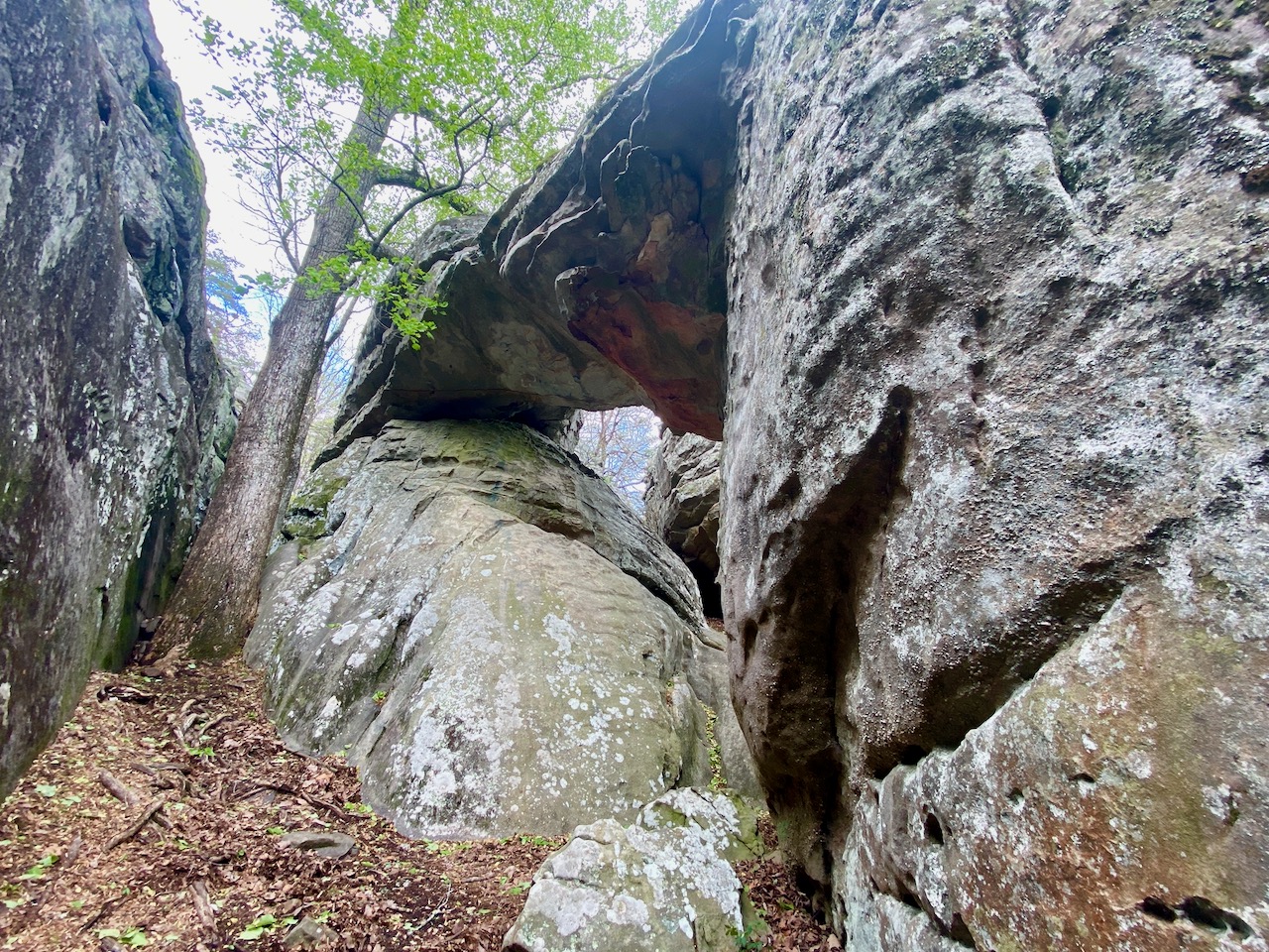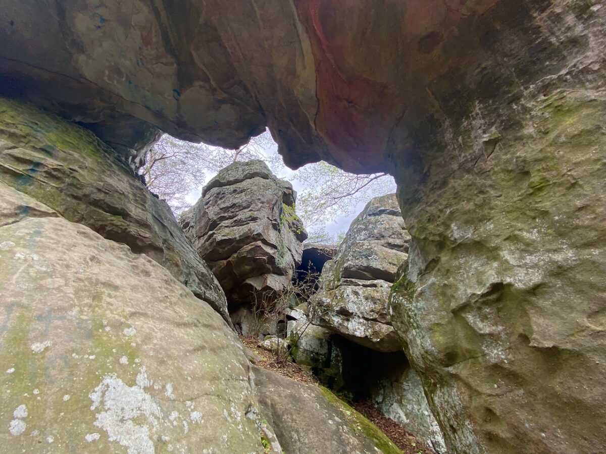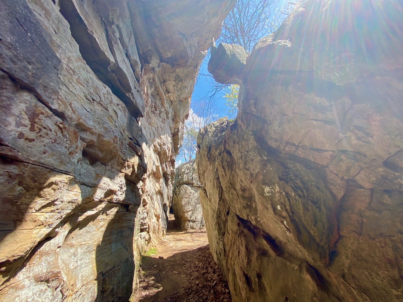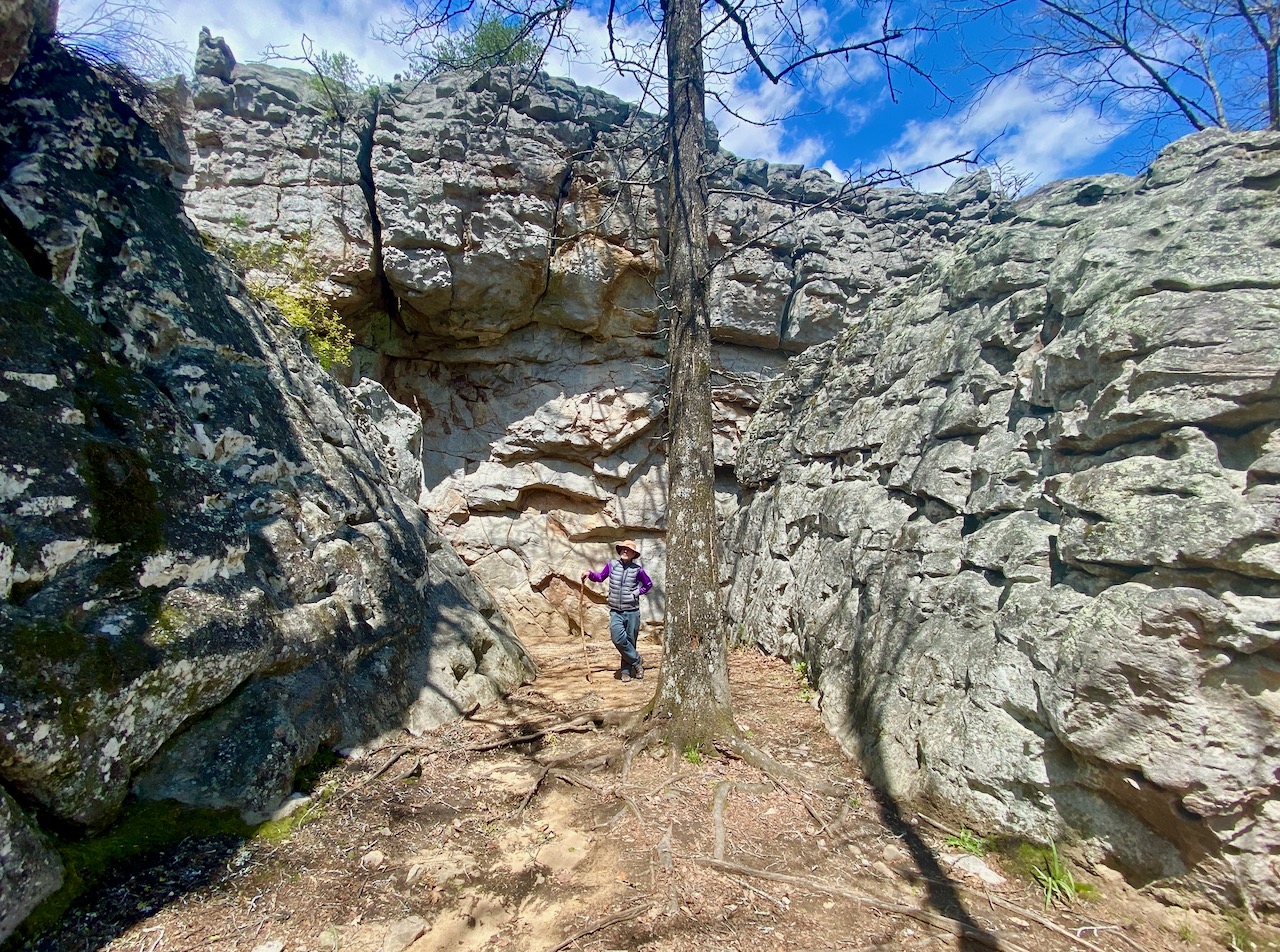 A view of one of the many passages in the maze of rocks dating back 300 million years to the to the Pennsylvanian Period at Cherokee Rock Village: Glynn Wilson