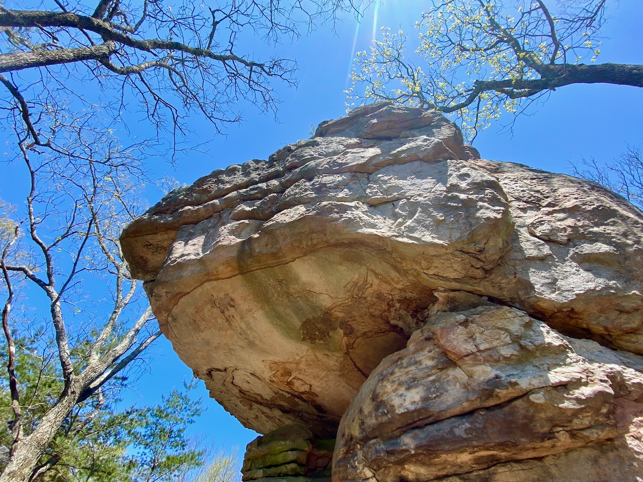 Its most notable features are massive sandstone boulders and stone formations up to 200 feet high that date back 300 million years to the Pennsylvanian Period. Some of the formations appear perfect for a place to live to escape heat, cold, wind, rain and other elements of nature for the Creek and Cherokee Native Americans who lived here 10,000 years since the last Ice Age. Evidence places them here as long ago as 8000 years BC. It also looks like a perfect natural hiding place for those who hid out from Andrew Jackson’s army here in the 1830s trying to escape removal from the land in what would come to be called the “Trail of Tears.” Some did escape and a few of their descendants still live in the area.