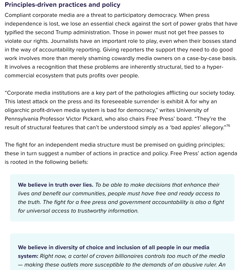 The Free Press report is called “A More Perfect Media,” and she interviewed the report’s author, Tim Karr, a former reporter for large news organizations including the Associated Press and Time, senior director of strategy and communications.