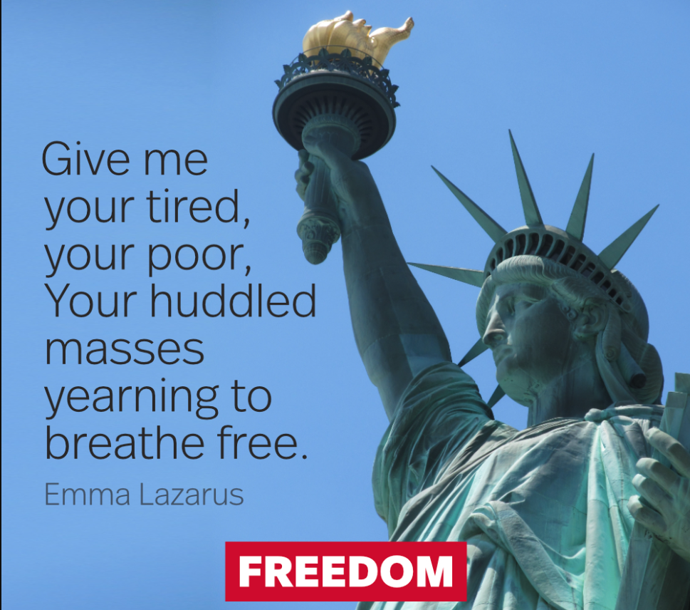 “Give me your tired, your poor, your huddled masses, yearning to breathe free,” says Lady Liberty on the Statue of Liberty.