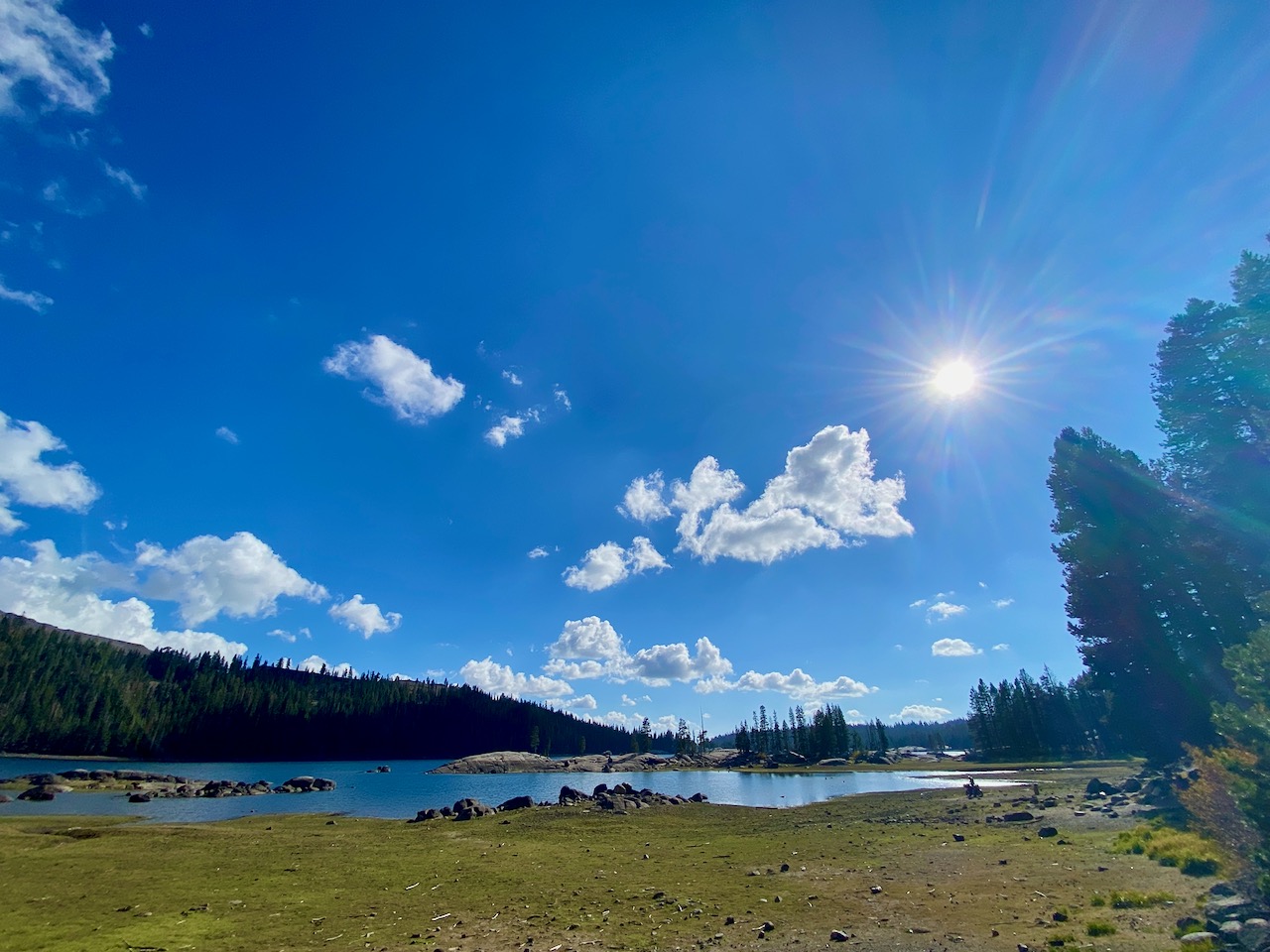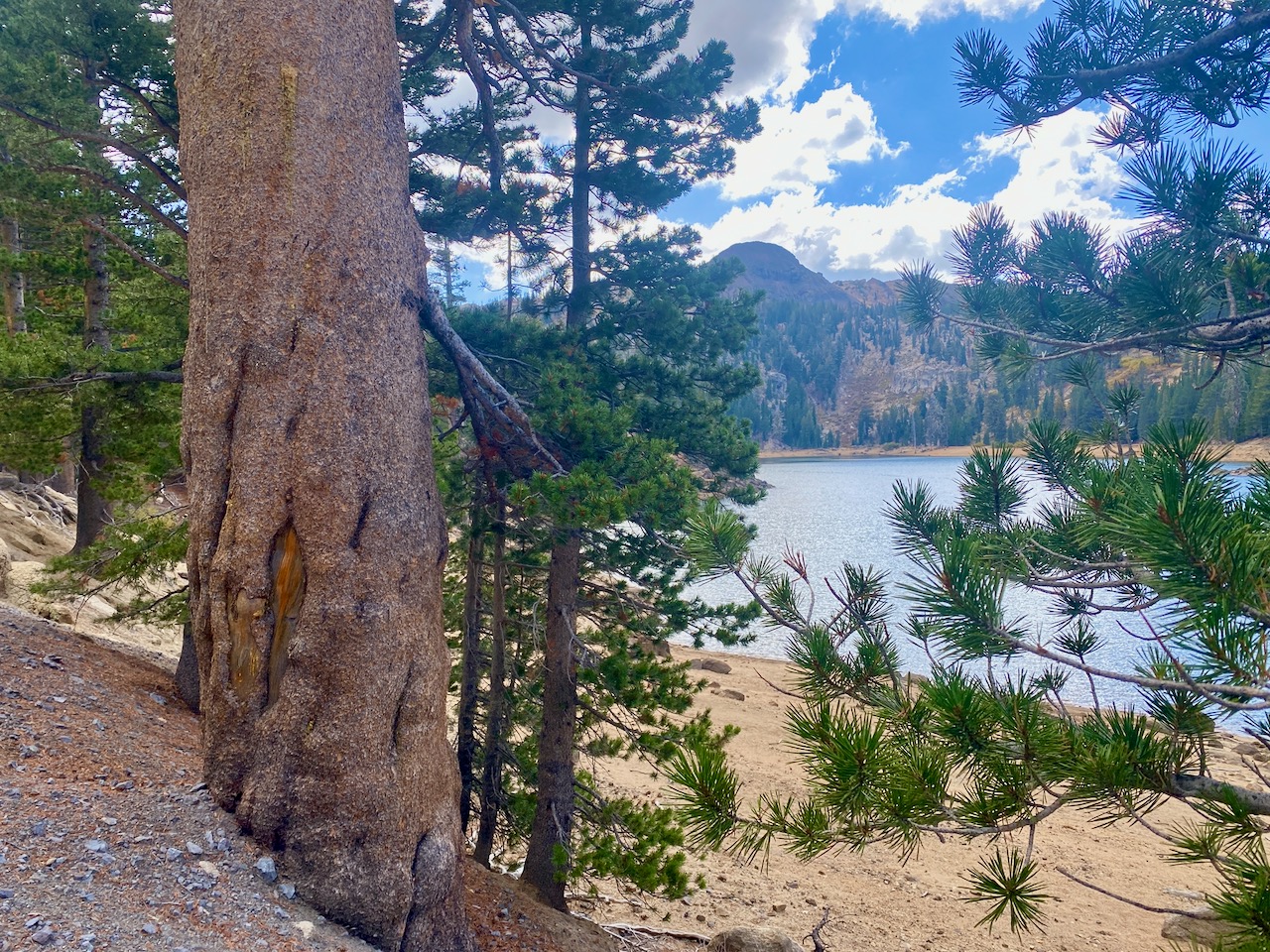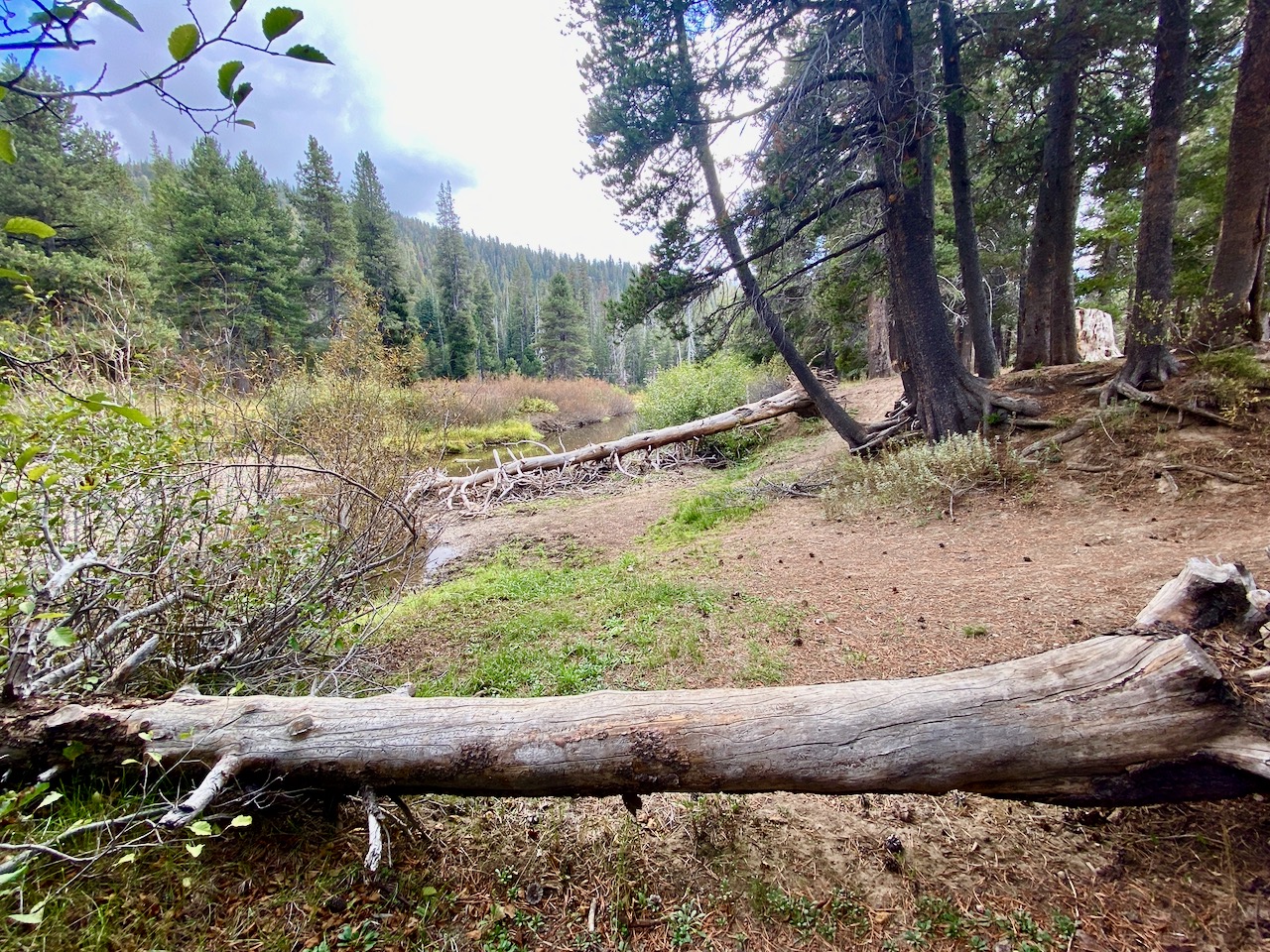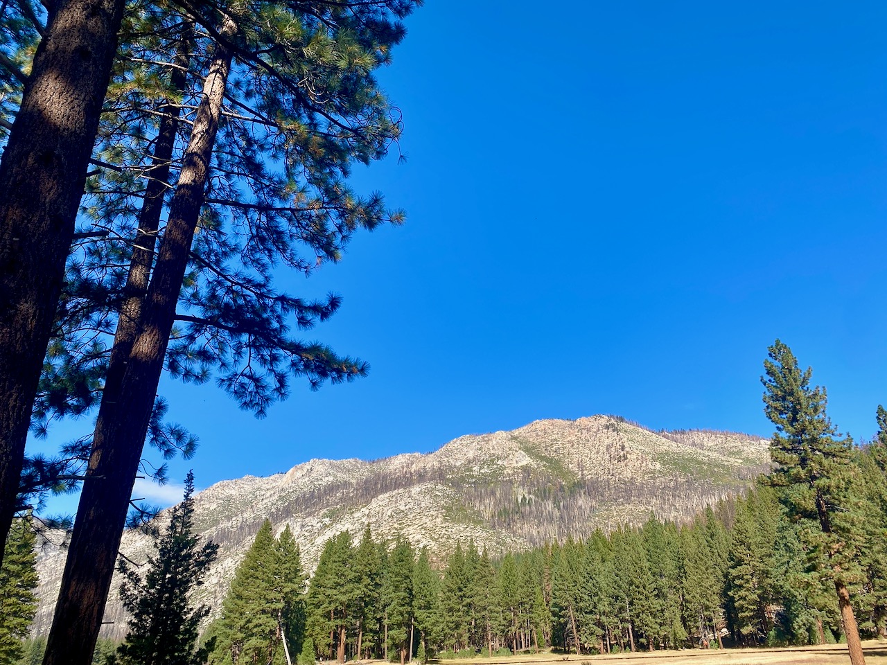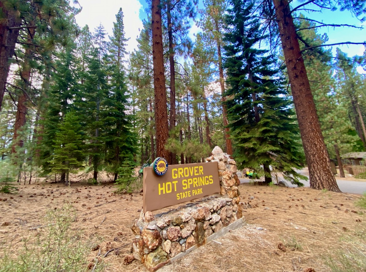 I had to get out of there fast, so plugged in “state park” in the Apple map and found a site available on Saturday night, believe it or not, in a place to the south and west called Grover Hot Springs State Park. The state line sign was so small and nondescript I didn’t even notice passing into California. It was a lovely spot, but no power hookups or cell phone service. They did have WiFi by the ranger office.