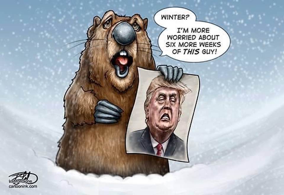 The day after the Grammys show in LA on Sunday, I was reading the New York Times Monday morning and sharing a few headlines, including the one about the Trump administration publishing dozens of nude photos in the Epstein Files, including victims; Trump calling for Republicans to ‘Nationalize’ the midterm elections because it’s looking more and more like they will never win without cheating; the insane criminal tech billionaire Elon Musk merging his A.I. startup company X-AI-Grok with SpaceX, to save it from inevitable financial failure; and an editorial cartoon about Groundhog Day.